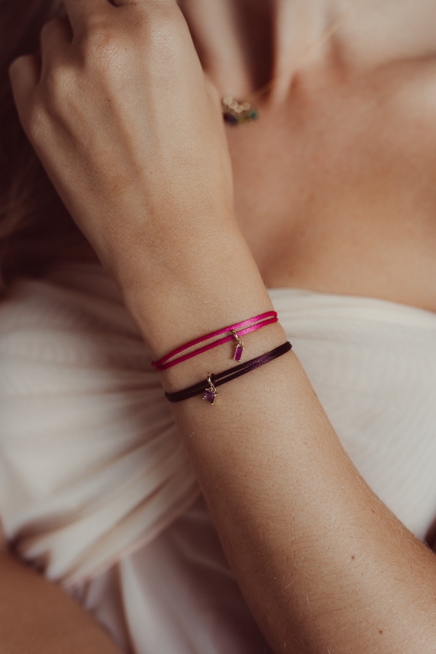 Geboortesteen Bedel Baguette Satijnkoord